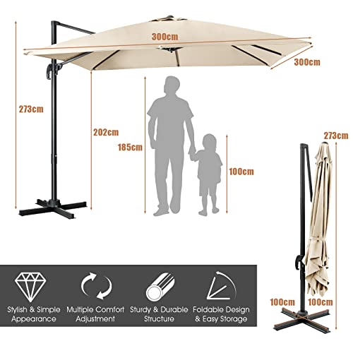 🏖️MIT BREITEM KREUß: Unser quadratischer Sonnenschirm 3×3 m hat einen massiv stabilen Kreuzfuß, zusätzlich zu den 8 Knochen und Metallstangen, die die Stabilität des Sonnenschirms weiter gewährleisten.