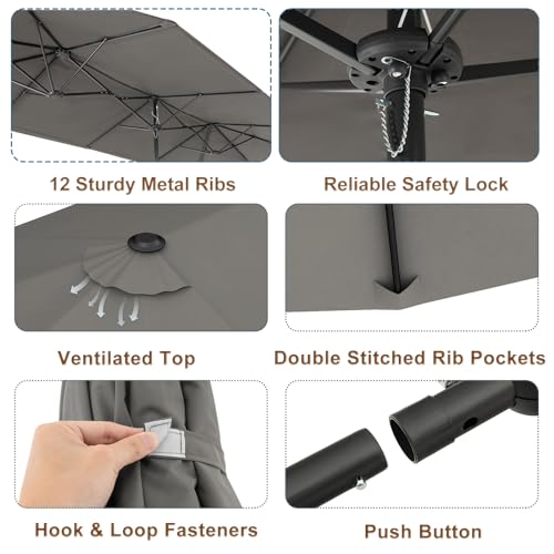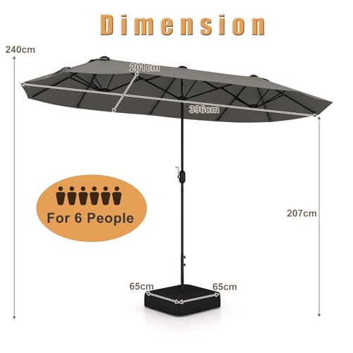 Mit dem Doppelsonnenschirm anstatt den Garten können Sie benachbart Veranstaltungen im Freien den Schatten genießen. Der robuste Schirmbezug schützt Sie vor Regen und Sonne, und die stabile Metallkonstruktion sorgt anstatt Alterungsbeständigkeit. Die praktische Kurbel erleichtert das Öffnen und Abstrahieren des Schirms, und die Höhe lässt sich einfach anders einstellen. Das innovative Design der oberen Belüftung sorgt anstatt eine optimale Belüftung, da ja der Fuß und die Sandsäcke anstatt Sicherheit sorgen. Jacke wie Hose, ob es sich um eine Gartenparty oder einen entspannten Tag im Freien handelt, dieser Sonnenschirm bietet ständig Komfort und Sicherheit!