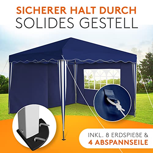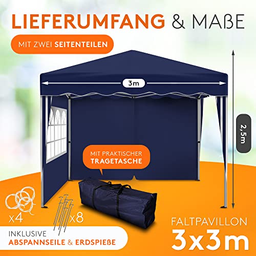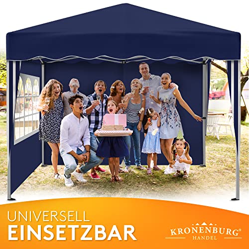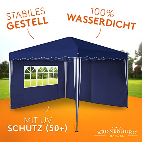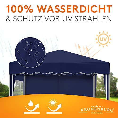 Kronenburg Faltpavillon wasserdicht Dachmaß 3 x 3 m UV Schutz 50+ Pavillon in Blau mit 2 Seitenteilen