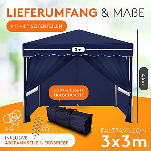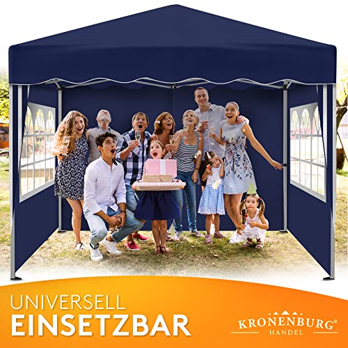 Kronenburg Faltpavillon wasserdicht Dachmaß 3 x 3 m UV Schutz 50+ Pavillon in Blau mit 4 Seitenteilen