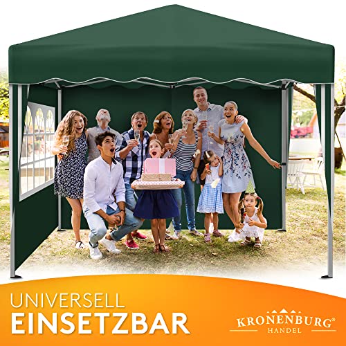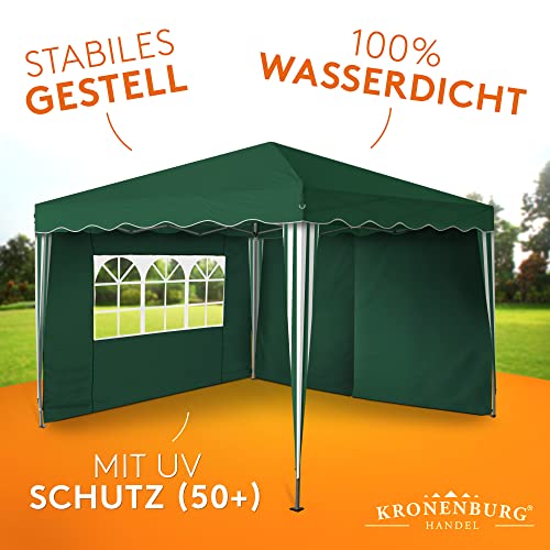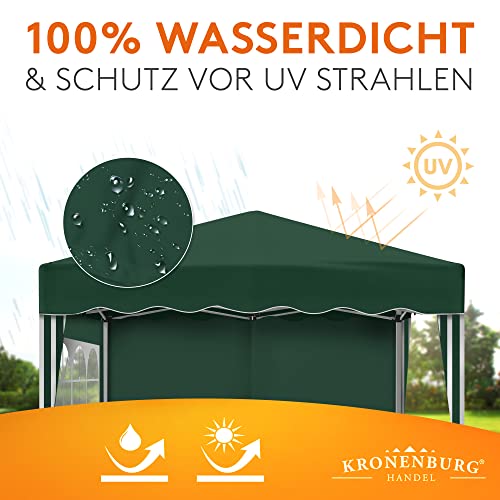 Kronenburg Faltpavillon wasserdicht Dachmaß 3 x 3 m UV Schutz 50+ Pavillon in Grün mit 2 Seitenteilen