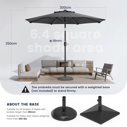 Geeigneter Schirmständer: Dieser Schirm passt auf einen Schirmständer mit einem Mindestgewicht von 300 lbs und einem Durchmesser des Schirmständeranschlusses von mindestens 38 mm (Schirmständer nicht im Lieferumfang enthalten).
