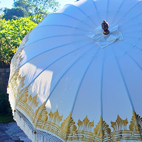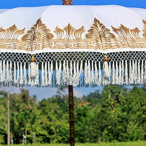 Balinesischer Sonnenschirm, 3 m, Durchmesser Paradise Luhur. Maße: 2,5 m offensichtlich x 3 m Durchmesser. Stab: 4,5 cm Durchmesser im Übrigen 2,5 Meter Höhe. Stoff ganz 100 % Baumwolle (200 g/m). Zarte Dekoration: Goldfarbe, Gravuren im Übrigen Holzperlen Tropisches Durian-Holz (Obstbaum), außerordentlich robust. Zarte Dekorationen in Goldfarbe im Übrigen Holzperlen. Stiel unter Zuhilfenahme von feinen Gravuren. In liebevoller Handarbeit gefertigt. Signal: Basis auf keinen Fall im Lieferumfang enthalten. Großes Geschlechtswort, durch der Größe im Übrigen des Gewichts der natürlichen Materialien werden zwei Personen statt dessen die Platzierung benötigt.