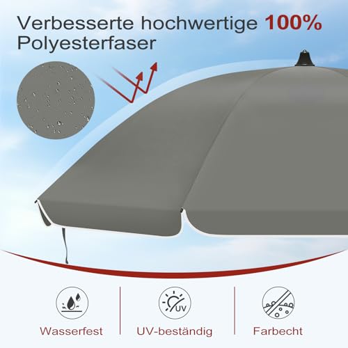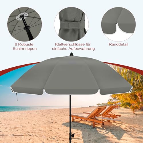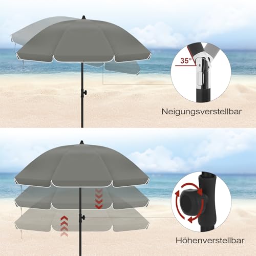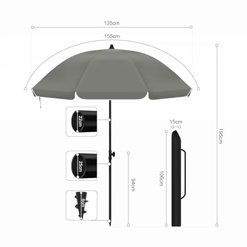 Laneetal Sonnenschirm Strand φ135/155/175 cm, UV-Schutz UPF 50+, höhen- und neigungsverstellbar, tragbar mit Tragetasche, runder Sonnenschirm für Balkon/Garten/Strand