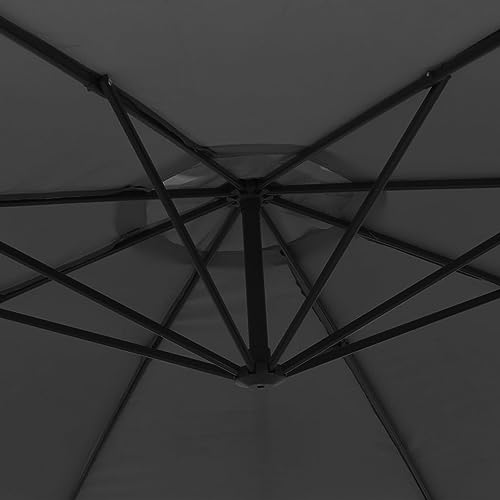 Dieser elegante hängende Sonnenschirm ist perfekt, um etwas Schatten zu bearbeiten und Sie vor den schädlichen UV-Strahlen der Sonne zu schützen. Aufgebraucht UV-schützendem und lichtechtem Polyester gefertigt, bietet Ihnen die Sonnenschirmhülle optimalen Abschirmung vor der Sonne und ist leicht zu reinigen. Er verfügt über eine stabile Kreuzbasis für mehr Haltbarkeit. Das exklusive Design dieses Sonnenschirms ermöglicht es Ihnen, den Sonnenschirm zu neigen, um die Sonne zu blockieren, wenn er in Richtung Horizont geht. Die starke Metallstange zusammen mit den 8 langlebigen Rippen macht den Sonnenschirm äußerst zäh und langlebig. Unser Gartenschirm lässt sich dank Kurbelmechanismus einfach öffnen und suffigieren. Der Arbeit ist einfach zu montieren. Bitte anerkennen Sie, dass wir empfehlen, den Schirmstoff bei starkem Regen mit einem Imprägnierspray zu Protokoll schreiben.