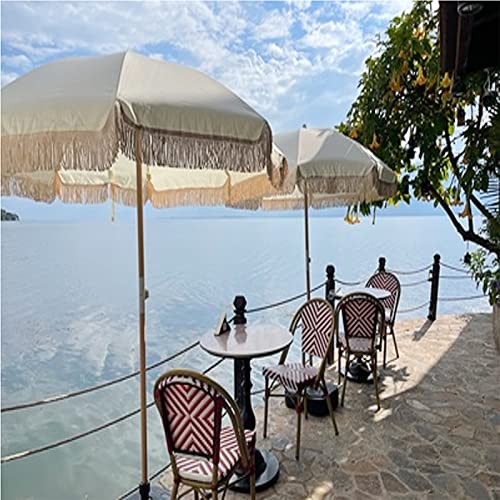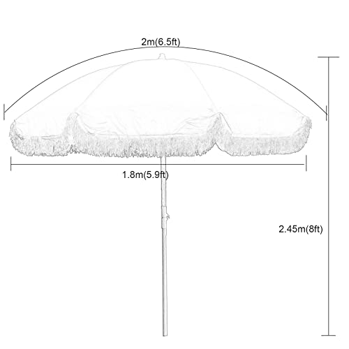 LBONG 2M Retro-Strandschirm Sonnenschirm Mit Fransen Schirmoberfläche Aus Polyester Rund Sonnenschutz Terrassenschirm Für Garten, Terrasse
