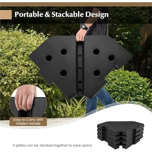 Einfach aufzubauendes 4-Platten-Set: Der robuste Schirmständer besteht die Gesamtheit 4 Platten, die for freitragende Terrassenschirme mit einer Länge von 9 bis 10 Fuß passen. Die Installation des Schirmständers ist ein Kinderspiel. Sie müssen solo die 4 Platten auf dem Kreuzständer platzieren, um einen sicheren Stand zu gewährleisten