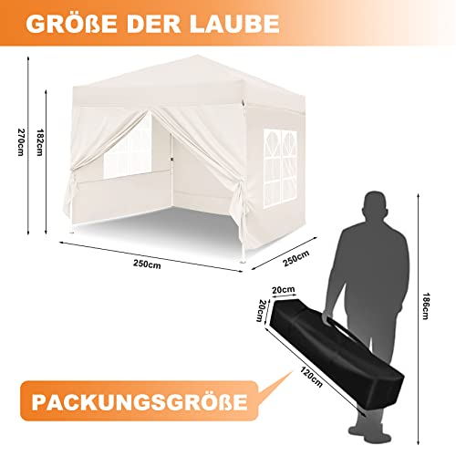 Leadyeah Pavillon Gartenpavillon mit 4 Seitenwänden, wasserdicht Pavillon faltbar Gartenzelt Partyzelt, Faltpavillon stabil mit UV Schutz 50+, 2.5 x 2.5m Zelt für Outdoor Gartenparty, Beige