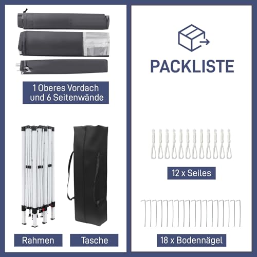 LEADZM Pavillon,Faltpavillon 3x6m,Pop-up,Wasserdicht,Winterfest,Höhenverstellbar,UV Schutz 50+,Gartenzelt,Partyzelt,Stahlrahmen,mit 6 Seitenteilen,für Garten,Party,Camping,Dunkelgrau