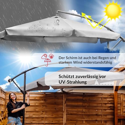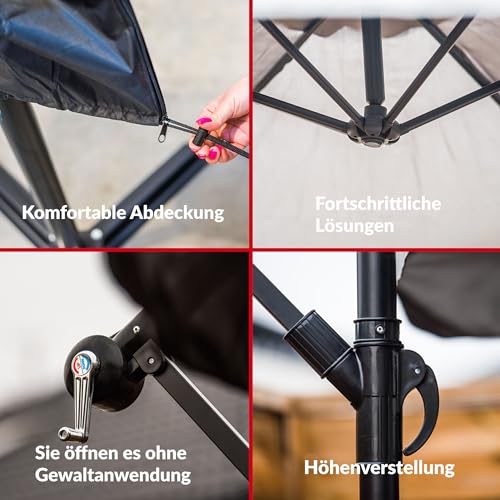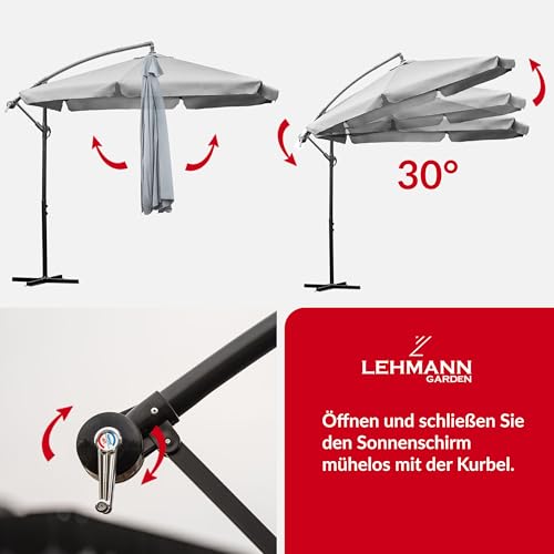 Lehmann Leichtmetall Sonnenschirm Ø 300 cm unter Zuhilfenahme von ständer | exorbitant Gartenschirm unter Zuhilfenahme von Kurbel | verstellbarer Kurbelschirm | Strafanzeige Sonnenschutz, UV-Abschirmung, wasserdicht