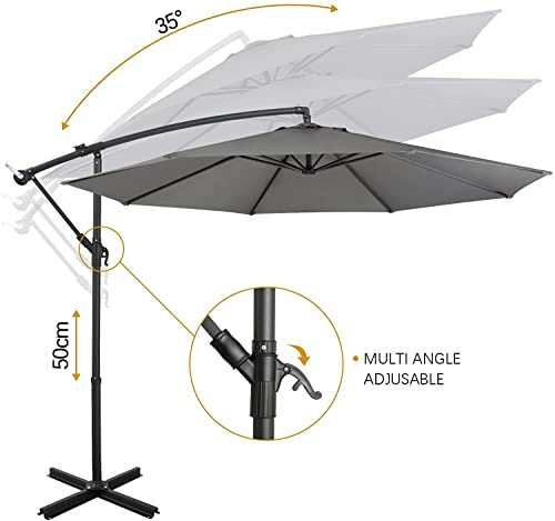 【FUNKTIONALES DESIGN】Versetzte Hängesonnenschirme werden mit Blick auf den Kunden entworfen. Wir haben ein einfach zu bedienendes System entwickelt, das den Sonnenschirm mit Leichtigkeit öffnet, schließt und kippt. Aufgebraucht Vorgänge können auf einfache und unkomplizierte Weise von einer Person durchgeführt werden.