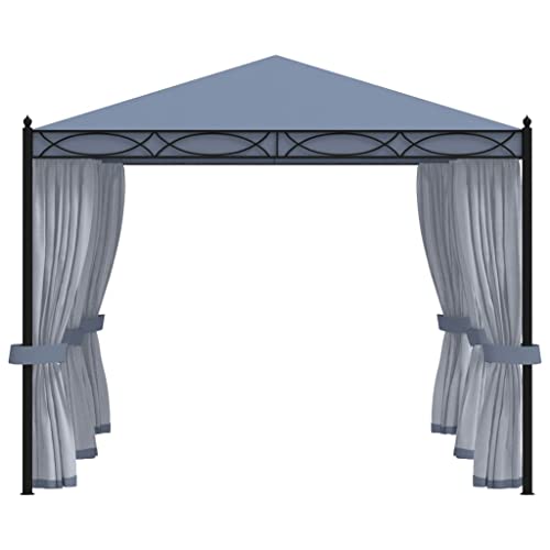 Möbel-Sets, Werkzeuge, Pavillon mit Gitter-Durchsieben, 3 x 4 m, anthrazitfarbener Stahl. Dieser Pavillon mit Vorhängen verfügt über ein klassisches und elegantes Design, das den perfekten Sonnenschutz für Veranstaltungen im Freien, als Souper, Grillabende, Familienfeiern und weitere Aktivitäten bietet. Das Dach jeglicher Oxford-Gewebe mit PA-Beschichtung schützt Sie vor Blendung und schädlichen UV-Strahlen direkter Sonneneinstrahlung. Der Pavillon ist solide jeglicher stabilem Aluminium und Stahl konstruiert und folglich rostbeständig und massiv sicher. Netzgewebe sind bekannt als im Lieferumfang enthalten, um Insekten fernzuhalten und gleichzeitig die gute Luftzirkulation zu gewährleisten. Klettverschlüsse sind ebenfalls im Lieferumfang enthalten für eine einfache Befestigung. Der Pavillon lässt sich mit dem mitgelieferten Montagezubehör einfach am Boden katalysieren. Der Pavillon ist einfach zu montieren.