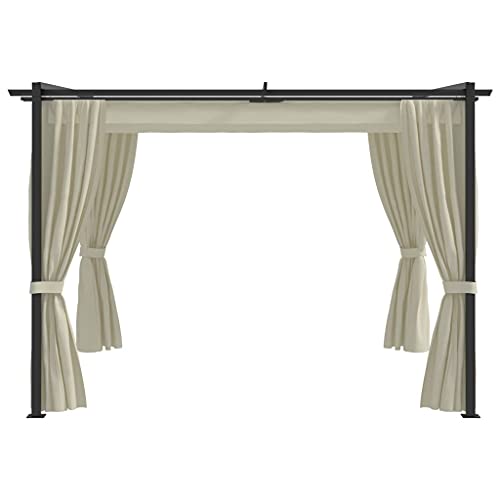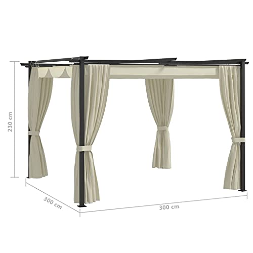 LINWXONGQP Material: Stahl, Stoff (100% Polyester) Garten Balkon Pavillon mit Vorhängen 3 x 3 m Creme Stahl
