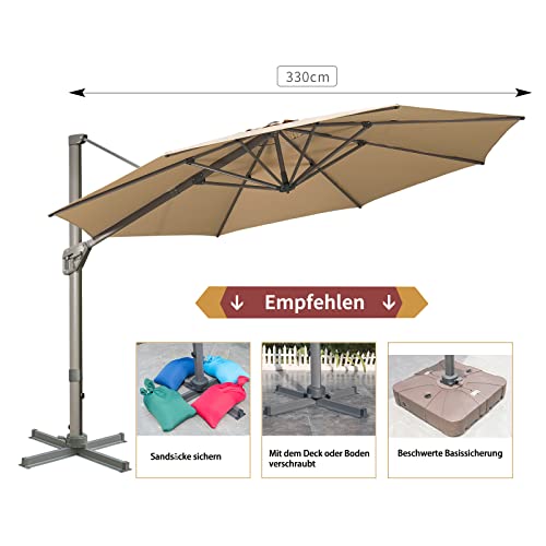 Hervorragende Execution – perfekt für den Sommer : Der Mast und das Gestell unseres Seitenarmschirms bestehen jeglicher pulverbeschichtetem Leichtmetall, mit der Auslieferung erhalten Sie ein Standkreuz jeglicher Stahl, für das Sie noch 4 Betonplatten benötigen.