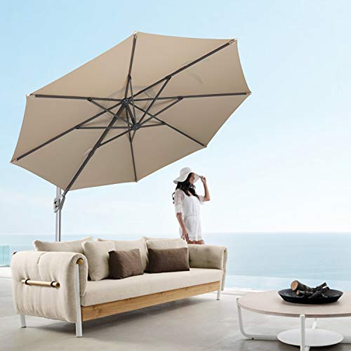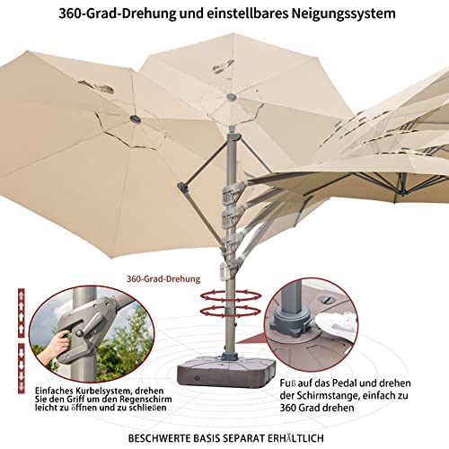 Ein gemütlicher Schattenplatz – egal zu welcher Uhrzeit : Die Standstange verfügt über ein 360-Schattierung-Rotationssystem und einen leicht zu drehenden Griff, der mit dem Griff auf 4 verschiedene Neigungswinkel einstellbar ist und mit dem Fußpedal um 360 ° gedreht werden kann, um einen vielseitigen, breiten Schatten in Ihrem Garten, Deck, Hof und Rasen zu erzielen , Balkon oder Restaurant.