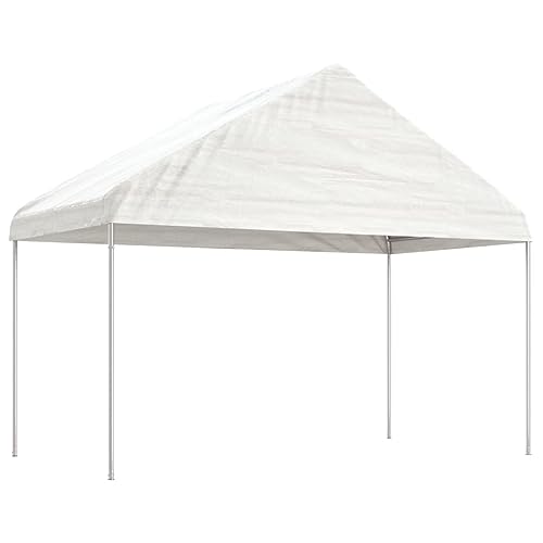 Pavillon mit Dach, weiß, 20,07 x 4,08 x 3,22 m, Polyethylen – Genießen Sie Ihren Wohnraum im Freien mit diesem Pavillon mit Dach, unabhängig von Sonne oder leichtem Regen. 【Langlebiges Material】Polyethylen (PE) ist das am weitesten verbreitete Kunststoffmaterial. Seine Verwendung in Möbeln bietet Praktikabilität, da es UV-beständig, leicht und auch pflegeleicht ist. Stabile Konstruktion: Der Stahlrahmen dieses Pavillons sorgt für Stabilität und Stabilität. Großartiger Schutz: Das Festzelt mit dem Dach bietet Schatten und Schutz vor direkter Sonneneinstrahlung. Geräumiger Raum: Dieses Veranstaltungszelt ist geräumig genug, um Ihre Familie und Freunde im Inneren zu versammeln, ohne sich überfüllt zu fühlen. Breite Anwendungen: Dieses Schutzzelt kann für eine Vielzahl von Zwecken verwendet werden. von Essen im Freien und Unterhaltung zur Entspannung und Meditation. Gut zu wissen: Dieses Produkt ist nicht geeignet für den Einsatz bei schlechten Wetterbedingungen wie starkem Wind, starkem Regen, Schnee, Sturm usw.