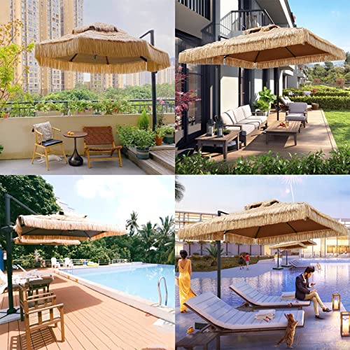 【Strohschirm】 Strandschirm aus Stroh im hawaiianischen Stil mit PE-Stroh-Polyestergewebe. mit hochwertiger PU- und UV-Beschichtung, die 95 % UV-Abschirmung bietet, lichtbeständig und wasserdicht.