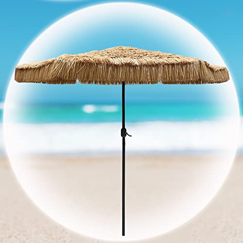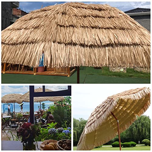 ☀☂【Umweltschutzmaterial】: Hochwertiges Umweltschutzmaterial, künstlicher Strohschirm für den Außenbereich besteht aus hochwertigem PP-Seilmaterial, 99% importiertem wasserdichtem Polyester-Regenschirmstoff, 3,5 cm dicker Stützstange mit 8 hochfesten Rippen, robust und langlebig