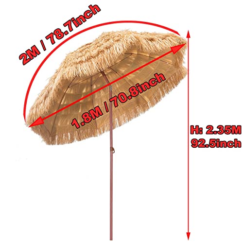 ☀☂【Hawaiianischer Strohschirm】: Schirmdurchmesser 200 cm, Umschlag 180 cm, Höhe 235 cm, Durchmesser der Stützstange 3,5 cm; Gewicht 3Kg