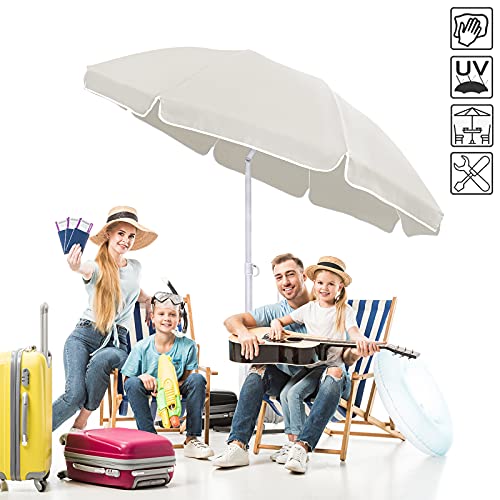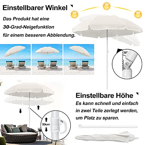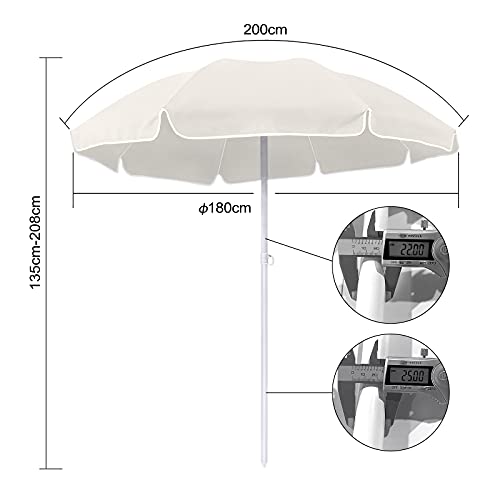 Stabiler und stabiler Rahmen: weiß lackierte Stahlstangen, 8 Rippen hervorbringen den Sonnenschirm stabiler und unterstützen zur Verlängerung der Lebensdauer des Sonnenschirms bei