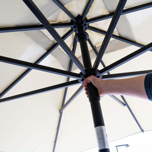 - Bequemer Öffnungsmechanismus: Dieser Gartenschirm ist mit einem einfachen Öffnungssystem ausgestattet, um ihn mühelos zu anbrechen und zu schlussfolgern. Also können Sie den Sonnenschirm im Handumdrehen aufstellen.