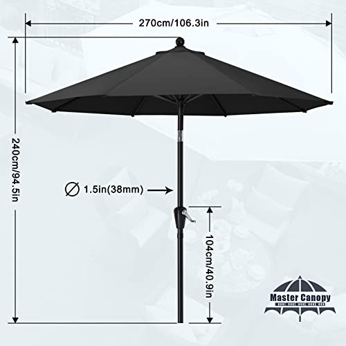 MasterCanopy 270 cm Sonnenschirm Patioschirm Gartenschirm Terrassenschirm Tischschirm Martkschirm 8 Rippen, Dunkelgrau