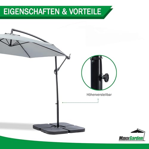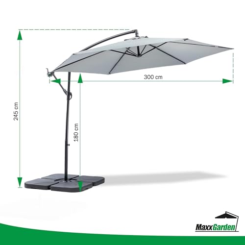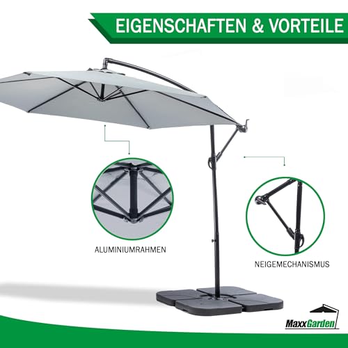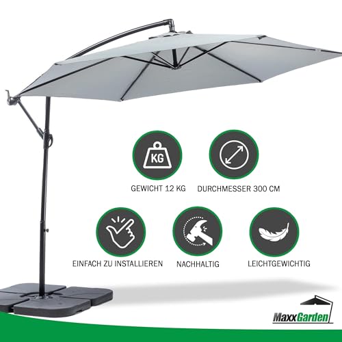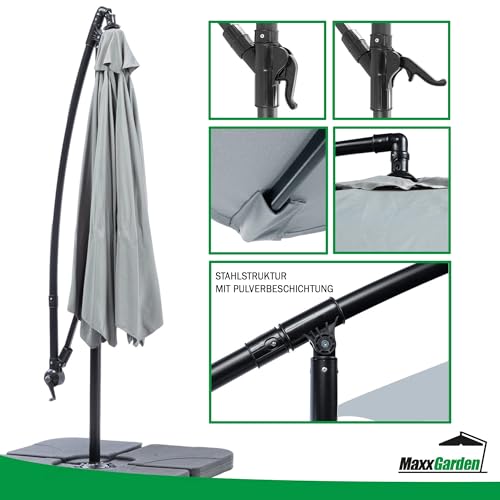 MaxxGarden Ampelschirm ⌀300cm + Abdeckung mit Kurbelvorrichtung – UV-Schutz Aluminium Wasserabweisend – Sonnenschirm – Gartenschirm – Marktschirm – mit Fliesen – Grau