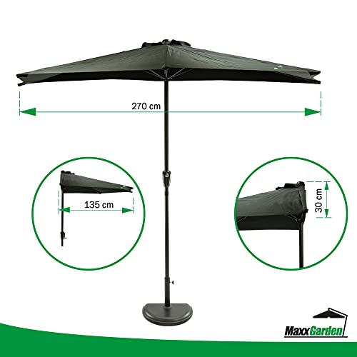 MaxxGarden – Sonnenschirm – Kippsystem – Balkonschirm halbrund – inkl