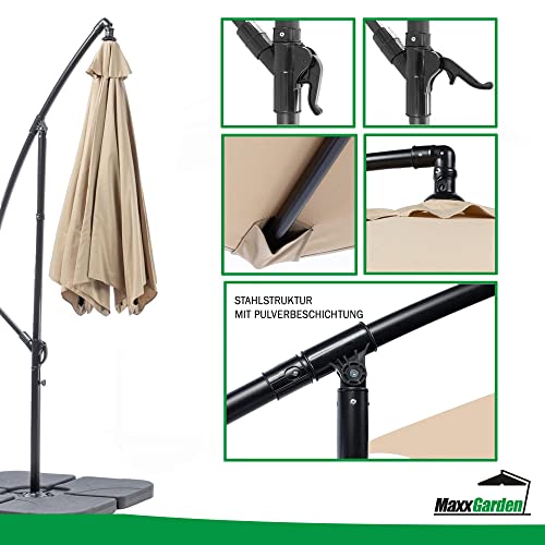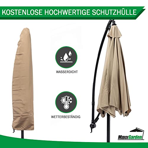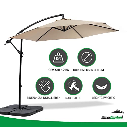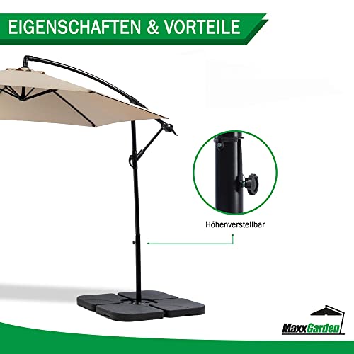 MaxxGarden – Sonnenschirm (Ø300cm) mit Zusätzlicher Kreuzbasis – Höhenverstellbarer Sonnenschirm Balkon mit UV-Schutz – Sonnenschirm für Terrasse