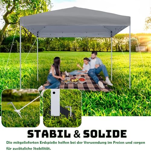 MAYTIIMO Pavillon 3x3m Pop-Up Faltpavillon Wasserdicht und UV-Schutz Faltbare Gartenpavillon Höhenverstellbar Gartenzelt mit Tragetasche Partyzelt für Outdoor Garten Party, Grau