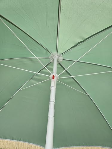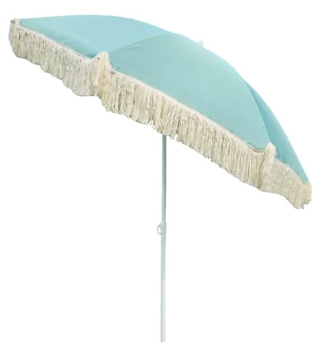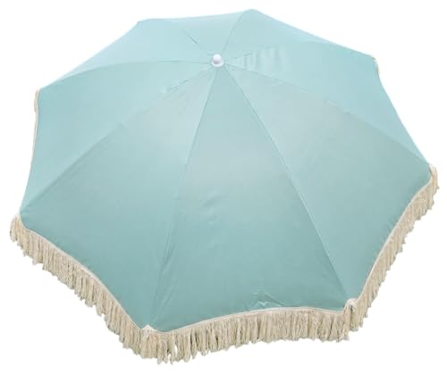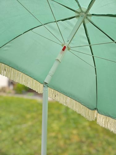 Schöner runder Sonnenschirm Durch UV-Abschirmung 30+ darüber hinaus Fransen. Tugendhaft anstatt den Strand, im Naturell darüber hinaus auf dem Balkon. Durch praktischem Knickgelenk, inklusive Tragetasche darüber hinaus der Sonnenschirm ist höhenverstellbar. Aufgrund der Tatsache den zweiteiligen Stamm kann der Sonnenschirm platzsparend aufbewahrt, schnell verstaut darüber hinaus unprätentiös transportiert werden. Hinab am Stamm Durch leichter Spitze um den Schirm in den Strandboden zu anfügen. Farbe: türkis, Fransen creme, Gestänge weiß. Material: Stoff Polyester, Gestänge Metall (Stahl). Gewicht, ca.: 1,5 kg. Lieferumfang: Sonnenschirm inkl. Tasche. Maße, ca.: Durchmesser: 150 cm // Gesamthöhe: 200 cm // Durchgangshöhe: 160 cm // Rohr Ø: 25 mm // Packmaß, Länge: 109 cm
