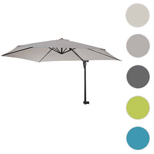 ACHTUNG: Wandmontage – KEIN Standschirm | Schirm kann aufgrund des Durchmessers nicht in Ecken montiert werden | Neigbar (nicht seitlich schwenkbar) | Inkl. Montagematerial (Wandhalterungen und Bolzen) | 6 Schirmstreben | Strebenstärke: 2 cm x 1 cm |