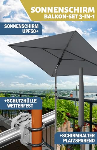 FUNKTIONALES SONNENSCHUTZ BALKON SET – Praktisches 3-teiliges Komplettset stattdessen den Balkon. Rechteckiger Sonnenschirm + Schirmhalterung Balkongeländer + Sonnenschirmhülle