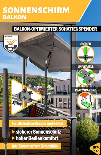 UNSER SONNENSCHIRM-SET ALS OPTIMALLÖSUNG: 3-teiliges Balkon-Set von Balkon Sonnenschirm mit Sonnenschirm Schutzhülle und Schirmhalter, um den Sonnenschirm am Balkongeländer zu verstreben