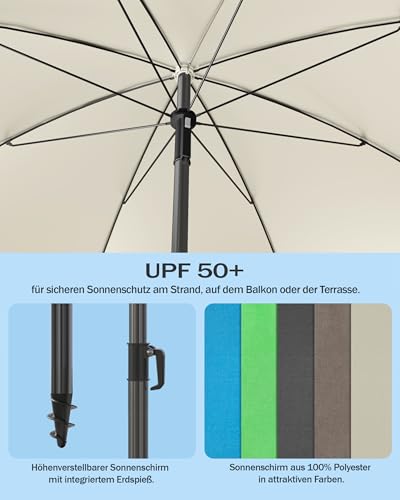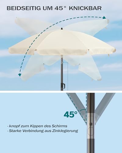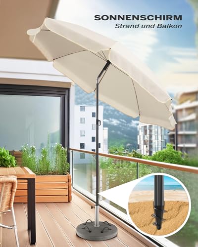 Menz Sonnenschirm Balkon + Sonnenschirmhülle – UV50+ Strandschirm 180 cm, Balkonschirm mit Knickfunktion, Gartenschirm, Sonnenschirm Strand – Fb. Beige