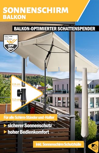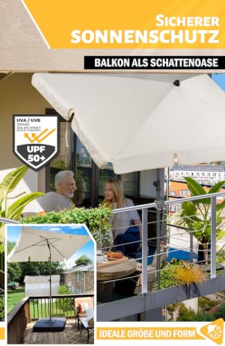 BALKON ALS TRAUMHAFTE SCHATTENOASE: Der rechteckige Sonnenschirm Balkon ist ein perfekter Schattenspender und Balkon Sonnenschutz mit UPF 50+; inklusive Sonnenschirmhülle. Der Balkonschirm kann mit jedem Schirmständer oder -halter verwendet werden.