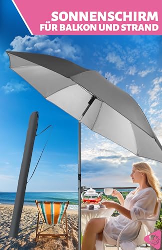 Menz Sonnenschirm Strand, Fb. Anthrazit – UPF 50+ Strandschirm Ø 180 cm, Sonnenschutz für Strand und Balkon – Strandschirm windfest stabil, Sonnenschirm mit Schutzhülle