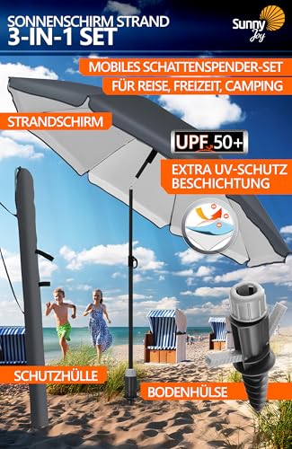 DURCHDACHTES STRANDSCHIRM SET – UPF 50+ Sonnenschirm zum Staub wischen statt dessen ganz Outdoor-Aktivitäten. Praktische Bodenhülse bietet tiefen Griff und hält den Sonnenschirm Strand windfest leistungsfähig
