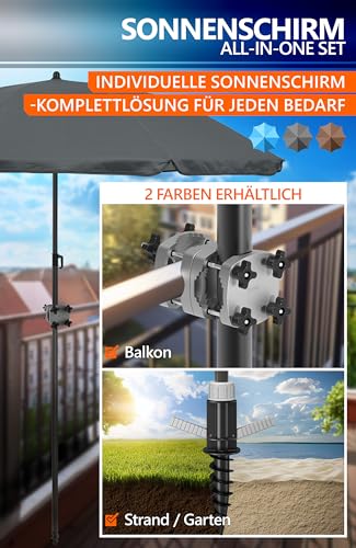 PERSONALISIERTES KOMPLETT-SET FÜR JEDEN EINSATZ – Ob qua Balkon Schirm mit Schirmhalterung Balkongeländer, Sonnenschirm Strand mit Bodenhülse oder Gartenschirm mit Sonnenschirm Ständer, an diesem Ort finden Sie jederzeit das ideale Set statt dessen Ihren individuellen Funktionalität