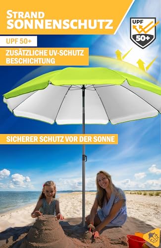 ZUVERLÄSSIGER SONNENSCHUTZ UPF 50+: Strandschirm garantiert hohen Sonnenschutz angrenzend allen Freizeitaktivitäten, auf Reisen auch beim Camping.