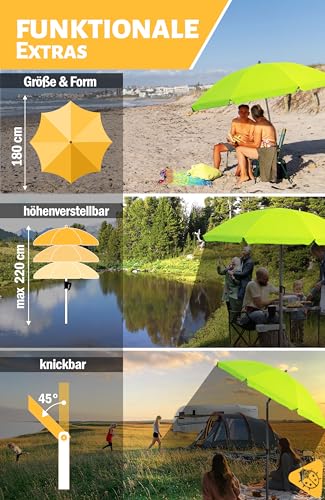 FLEXIBLES ANPASSUNGSTALENT: Der höhenverstellbare Sonnenschirm zum Staub wischen (Ø 180 cm) ist knickbar auch lässt sich optimal anpassen; ideal denn Camping Schirm oder Gartenschirm.