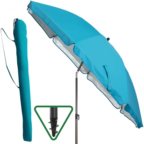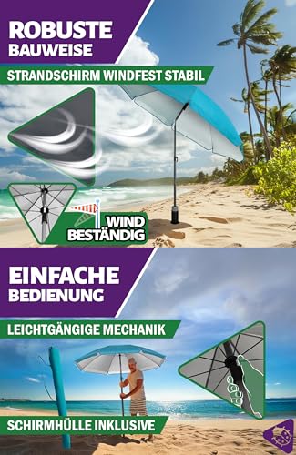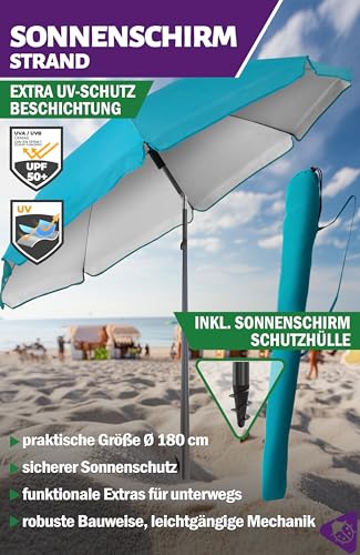 Menz Sonnenschirm Strand – UPF 50+ Strandschirm Ø 180 cm, Strandschirm windfest stabil, sicherer Sonnenschutz Strand, Sonnenschirm mit Schutzhülle in Fb. Türkis