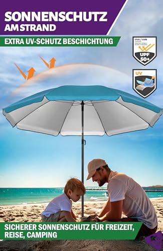SONNENSCHIRM FÜR JEDE GELEGENHEIT: Kompakter UPF 50+ Sonnenschirm Strand windfest zäh mit funktionellen Extras und Sonnenschirm Schutzhülle; ideal qua Sonnenschirm zum Abstauben