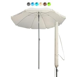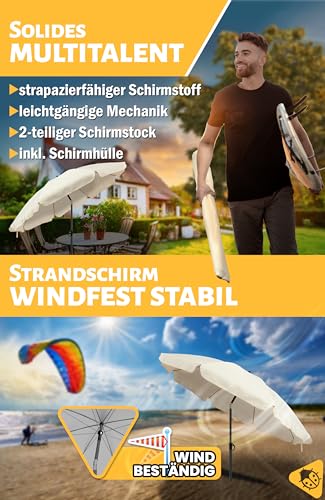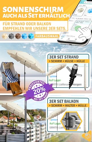 Menz Strandschirm, inkl. Hülle – UPF 50+ Sonnenschirm Strand, Strandschirm windfest stabil, Gartenschirm, Sonnenschirm Balkon 180 cm, Balkon-Schirm in Beige