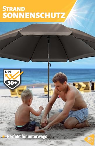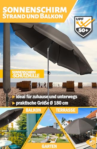 Menz Strandschirm, inkl. Hülle – UPF 50+ Sonnenschirm Strand, Strandschirm windfest stabil, Gartenschirm, Sonnenschirm Balkon 180 cm, Balkon-Schirm in Braun