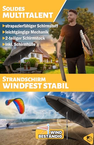 SOLIDES MULTITALENT: Der robuste Sonnenschirm statt Terrasse, Balkon, Charakter oder Strand überzeugt vor dem Hintergrund seine leichtgängige Mechanik und erweist sich qua windstabil; qua Verdeckung.