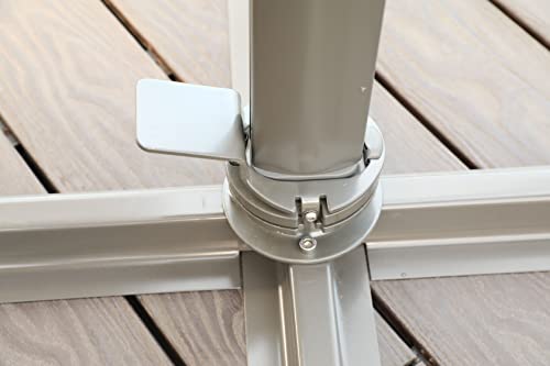 Aufgrund der Tatsache seiner qualitativ hochwertigen Erledigung bietet er einen optimalen Sonnenschutz (UV 50+) auch ist wasserabweisend (250 g / m2 polyester über Teflon Therapie)