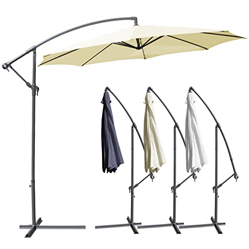 • 1 x freischwingender Sonnenschirm (3 oder 3,5 m Durchmesser), in Beige, Grau oder Weiß, zur Selbstmontage
