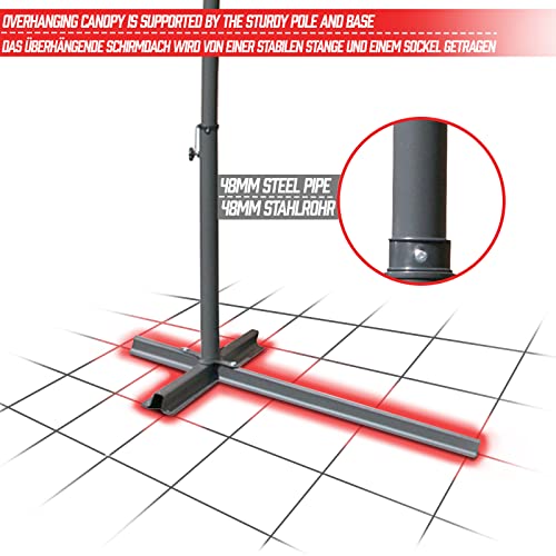 ⭐⭐⭐⭐⭐ STABIL: Genießen Sie Ihre Zeit im Freien, ohne sich Gedanken über die Stabilität des Schirms zu machen: Das dicke Stahlrohr (48 mm) des freischwingenden Gartenschirms sorgt für ausreichende Sicherheit