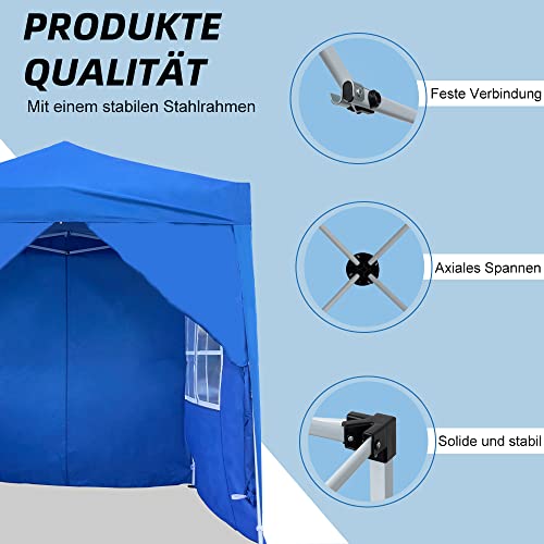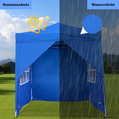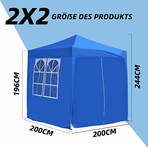 Mingone Faltbarer Pavillon 2x2m Wasserdicht Stabil Winterfest – Pop Up Zelt für Garten, Party, Grill – UV Schutz 50+, Blau